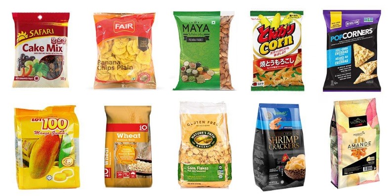 Food products: candy, sunflower seeds, peanuts, nuts, beans, potato chips, popcorn, almonds, biscuits, chocolate, dry fruit, jelly.